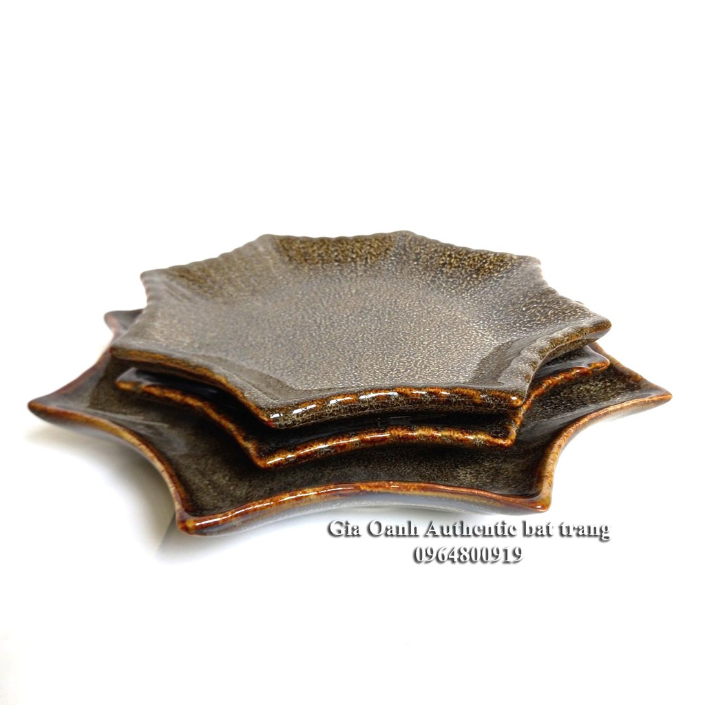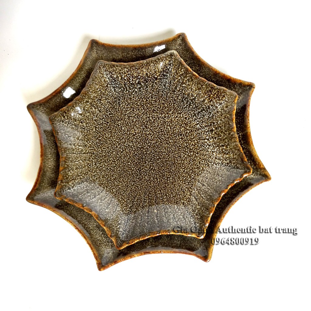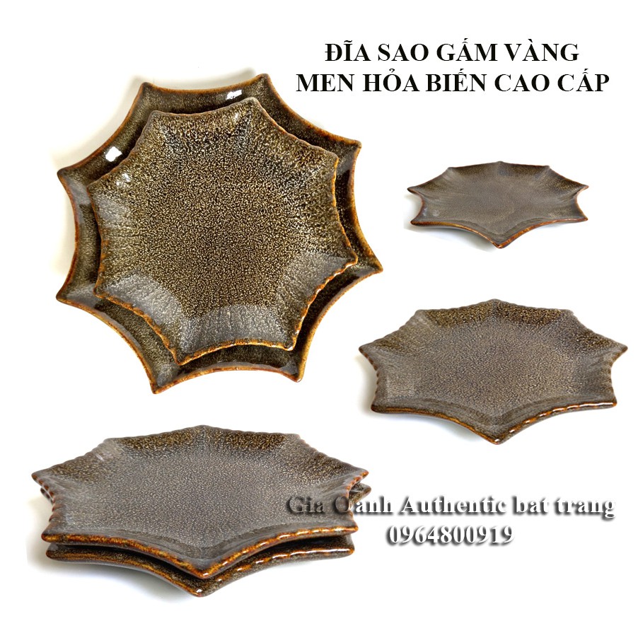 Đĩa, khay sao men gấm vàng hỏa biến, có 2 size, D20cm và D25cm sao men Gấm vàng - sản xuất tại xưởng gốm sứ Gia Oanh authentic bat trang
