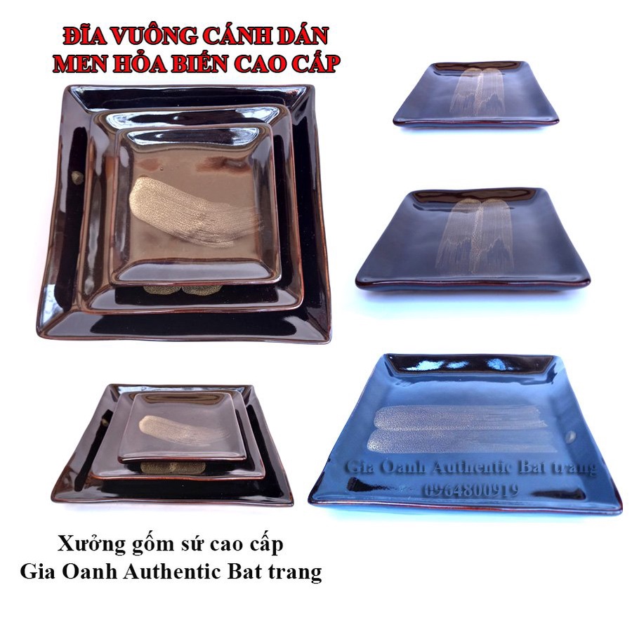 Với các nhà hàng khách sạn hay gia đình ở nhà thì việc dùng một chiếc đĩa vuông để đựng và trang trí món ăn là rất cần thiết, đặc biệt sản phẩm men cao cấp nung ở nhiệt độ cao rất đẹp và sang trọng là sản phẩm rất tuyệt vời cho quý giá đình và nhà hàngĐĩa khay vuông CÁNH DÁN - Chuyên đựng và trang trí món ăn - Men hỏa biến cao cấp - gốm sứ gia Oanh authentic Bát tràng\