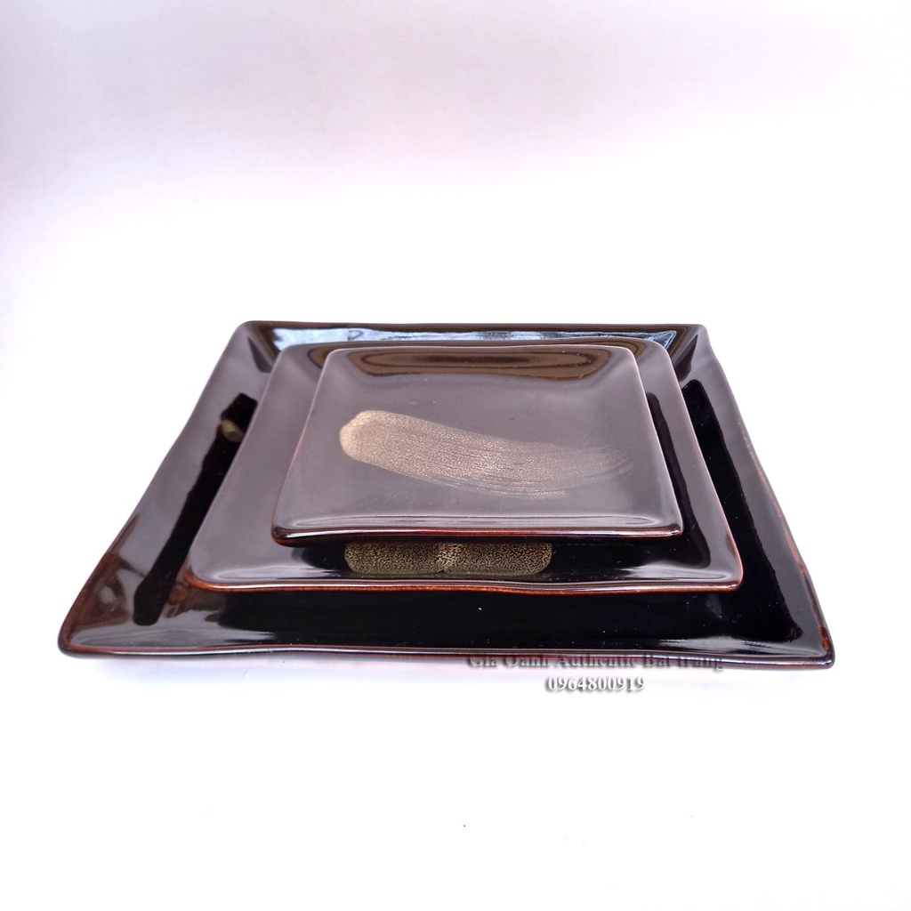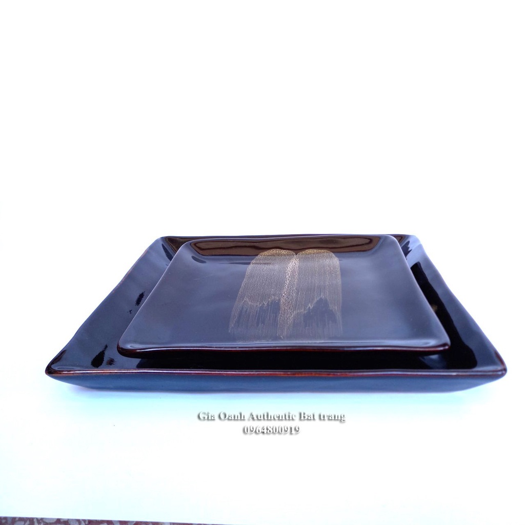 Đĩa vuông - chuyên đựng và trang trí món ăn - Men hỏa biến cao cấp - Xưởng gốm sứ gia Oanh Authentic Bat trang