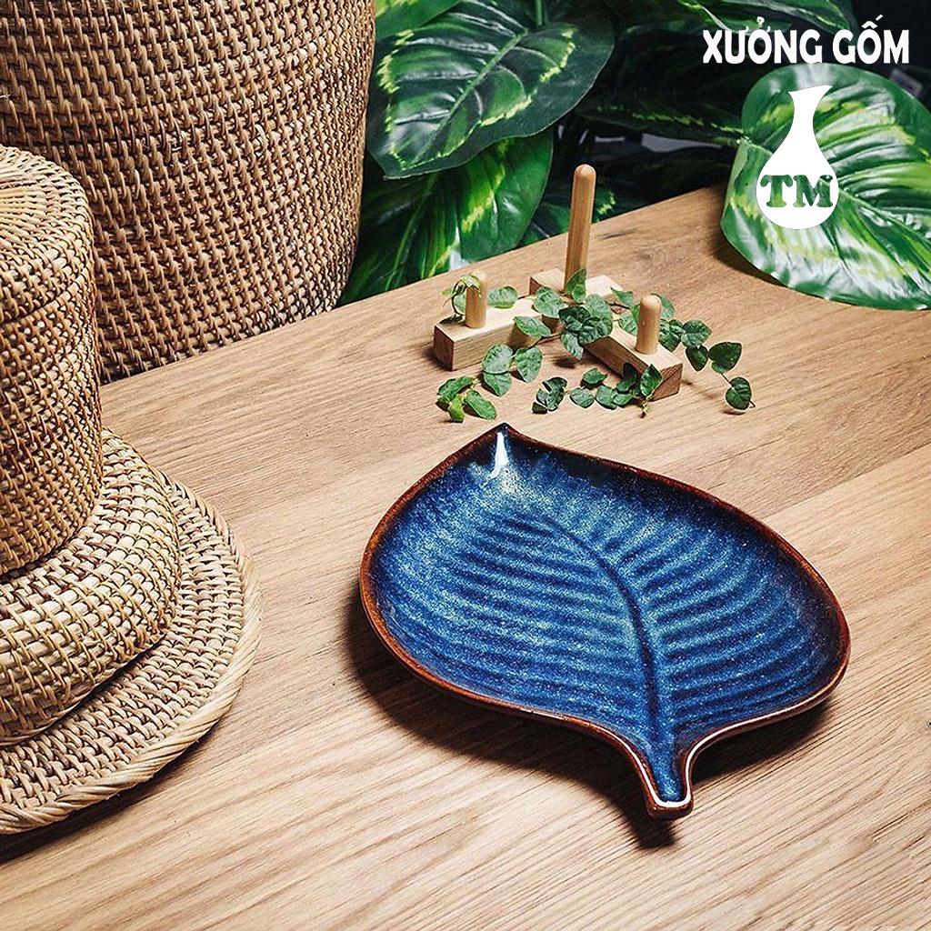 Đĩa Lá Gân Xoài Men Xanh Hoả Biến (2 Size) Xưởng Gốm TM Bát Tràng - Khay Lá Xoài Men Xanh Hoả Biến - Gốm Sứ Cao Cấp