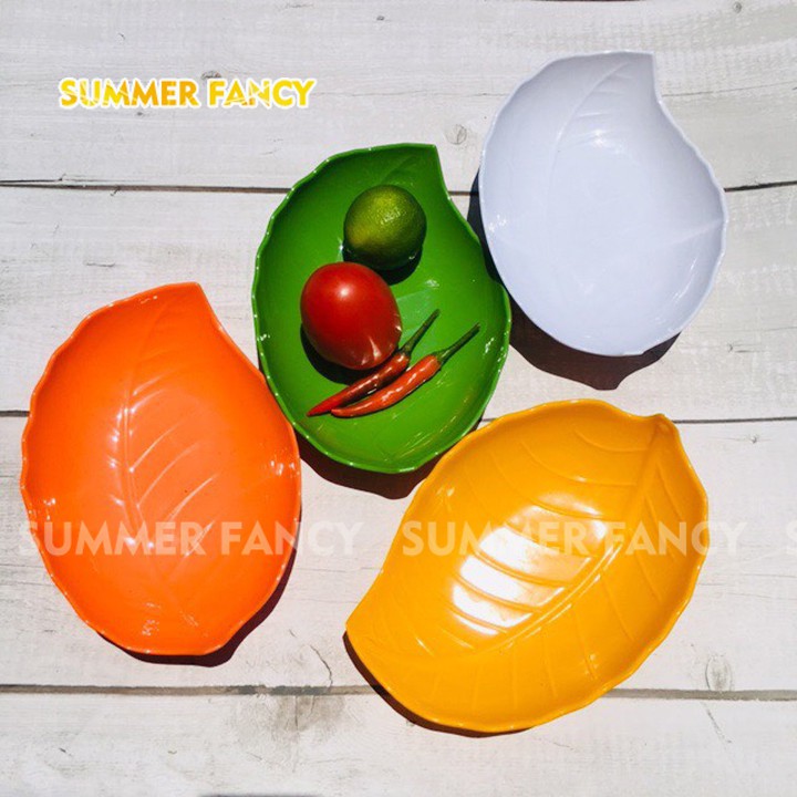 Nhà cửa & Đời sống > Bộ đồ bàn ăn > Dĩa || Dĩa lá phíp 18 x 9cm gân melamine phíp vàng cam xanh lá trắng - leaf dish F-DTCS6Còn hàng