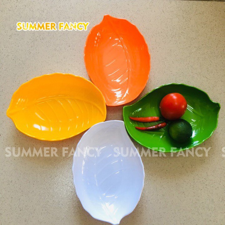 Dĩa lá phíp 18 x 9cm gân melamine phíp vàng cam xanh lá trắng - leaf dish F-DTCS6