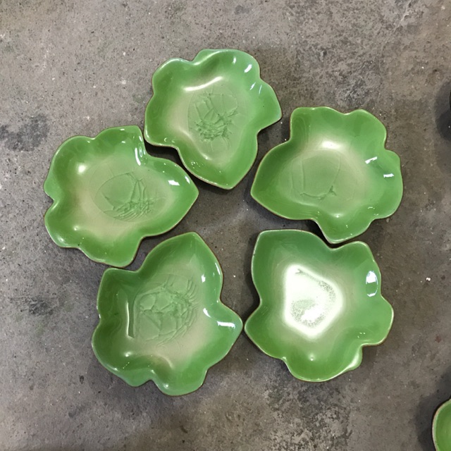 Những chiếc đĩa xinh xắn, ngộ nghĩnh và đáng yêu biết bao nhiêu , đĩa trắng nhỏ hình lá cây, bạn có thể hoàn toàn dùng những chiếc đĩa xinh xắn và ngộ nghĩnh. Đĩa được làm với chất lượng gốm sứ rất tuyệt vời và được sử dụng rộng rãi cho gia đình .Đĩa xanh nhỏ hình lá cây
