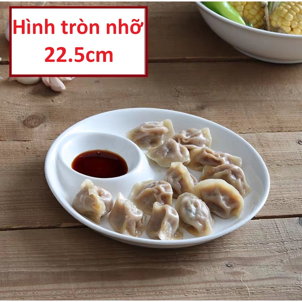 🍒Đĩa liền với bát con, bạn có thể để nước chấm hoặc gia vị, bột canh, tỏi ớt cho từng món ăn riêng rẽ.🍒Mỗi món dùng riêng một đĩa này, sẽ không còn phải để quá nhiều bát con trên mâm.