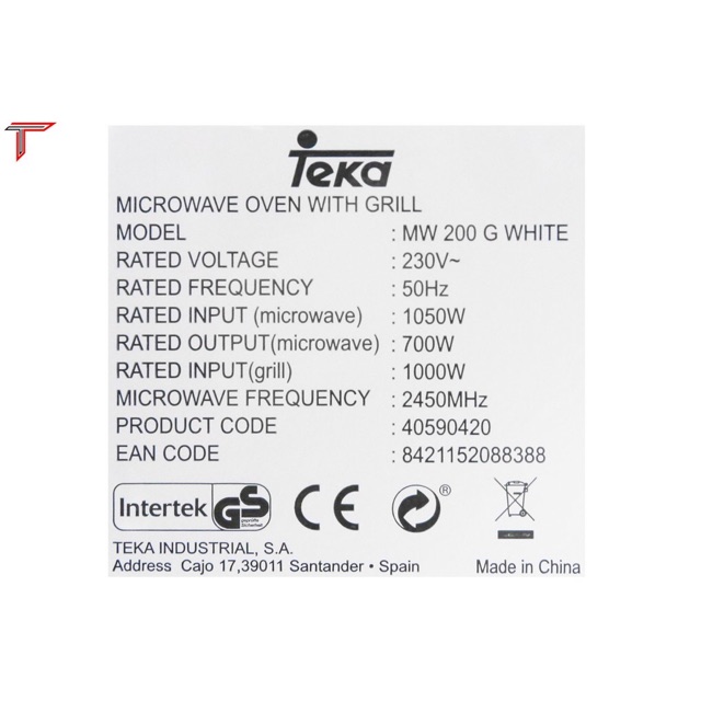 Thiết Bị Điện Gia Dụng > Đồ gia dụng nhà bếp > Lò vi sóng || Đĩa lò vi sóng TEKA - MW 200G whiteCòn hàng