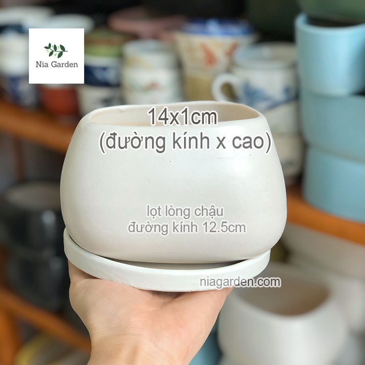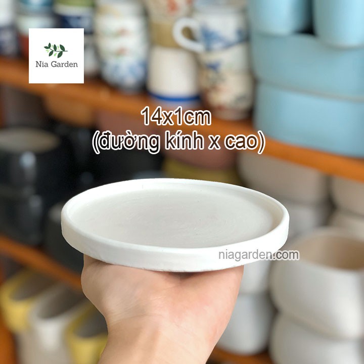 Nhà cửa & Đời sống > Làm vườn > Chậu cây || Dĩa lót chậu cây men trắng tròn 14cm dùng cho chậu cây văn phòng Nia Garden N6Còn hàng