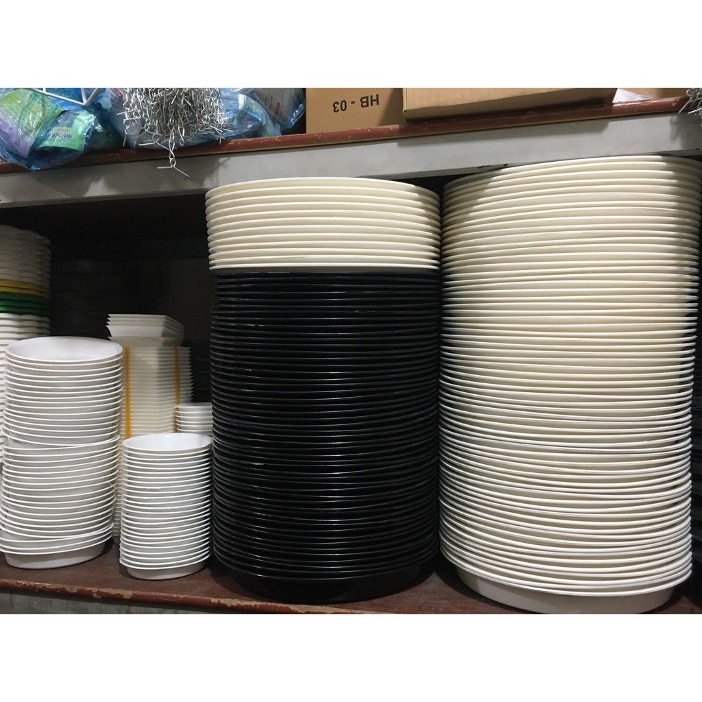 Đĩa lót chậu tròn, chất liệu nhựa dày dặn, màu đen, độ bền cao, tránh bị vỡ khi di chuyển chậu cây (so với đĩa sứ)Các size đĩa lót có đường kính 23cm-27cm-30cm-35cm-40cm-45cm (lọt lòng 20cm-23cm-25cm-30cm-35cm-40cm)