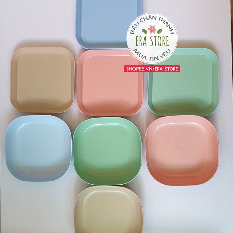 Đĩa LÚA MẠCH nhựa vuông tròn nhiều màu gọn nhẹ an toàn cho sức khỏe đựng kẹo thức ăn tiện lợi đẹp mắt