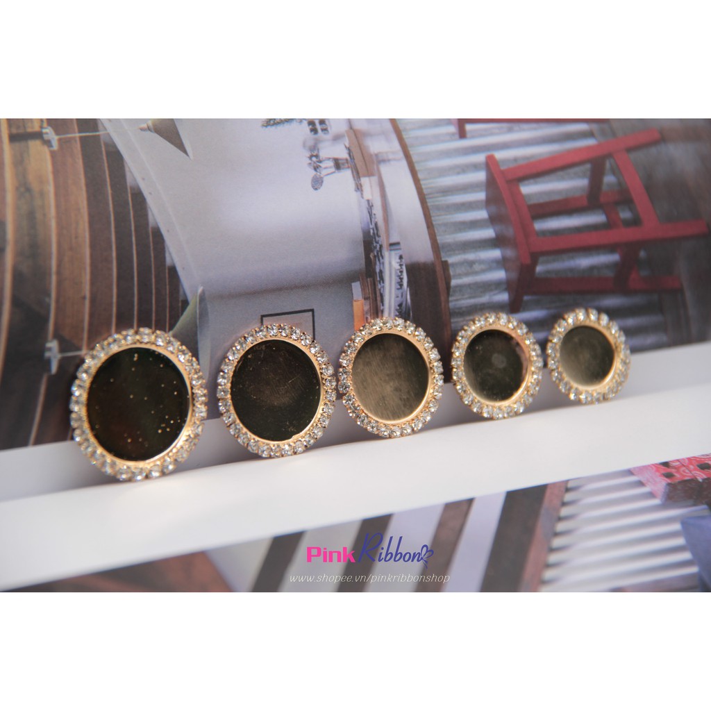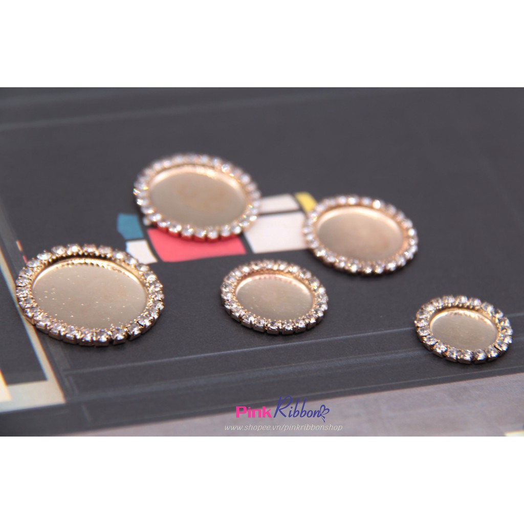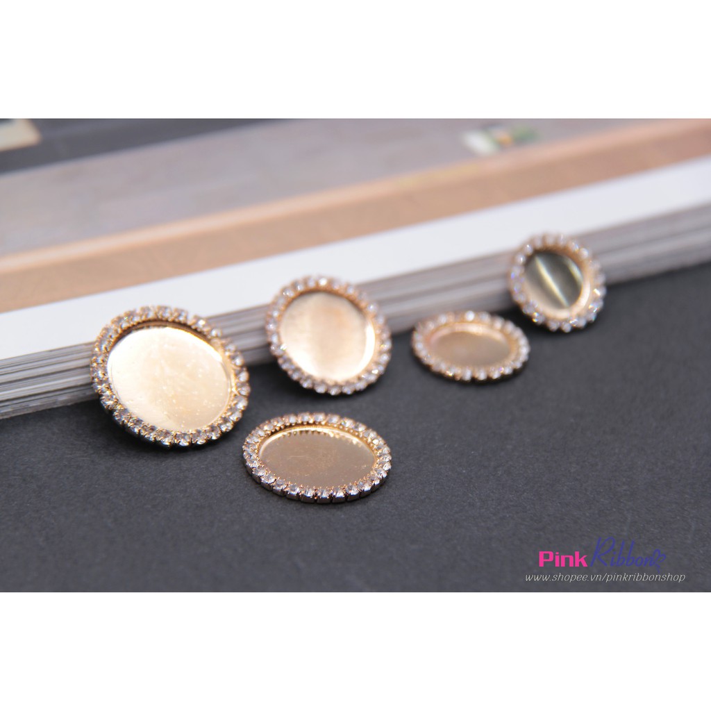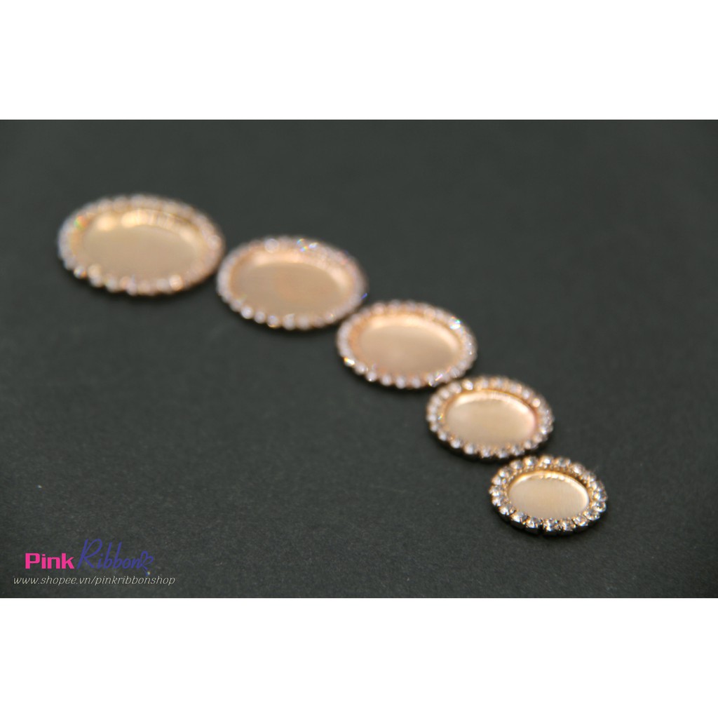 Chất liệu: Mạ kim, đính đáĐĩa mạ kim viền đá có 5 kích thước: