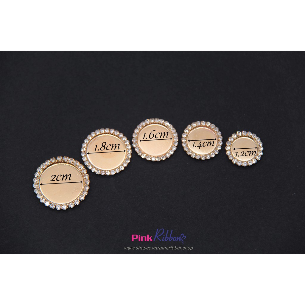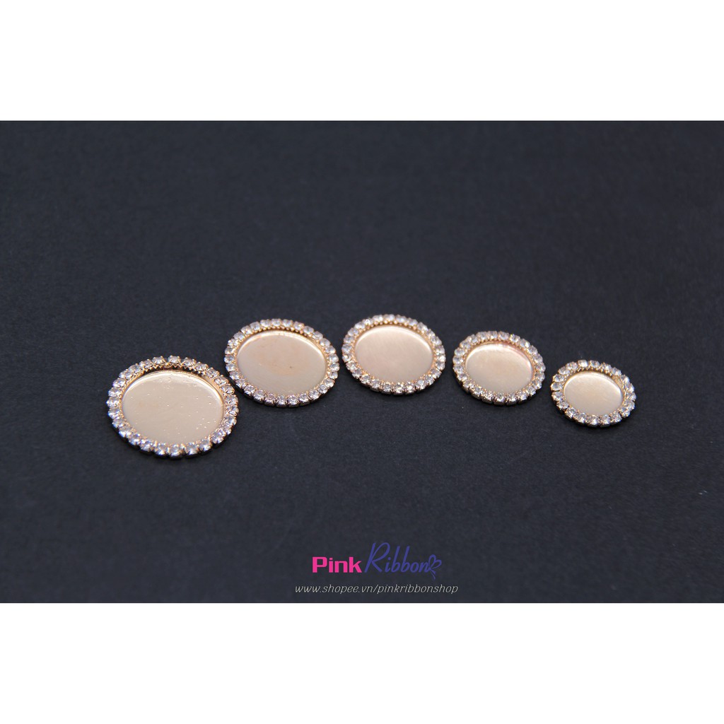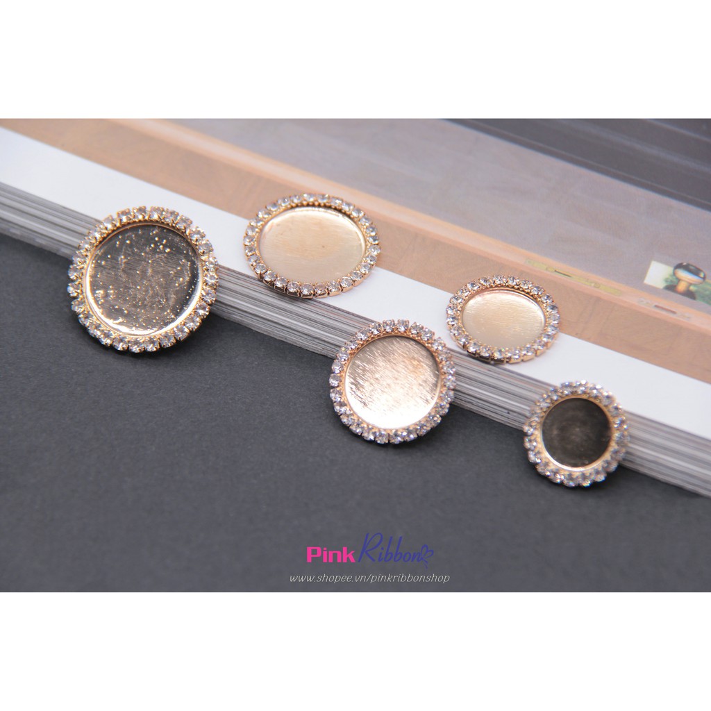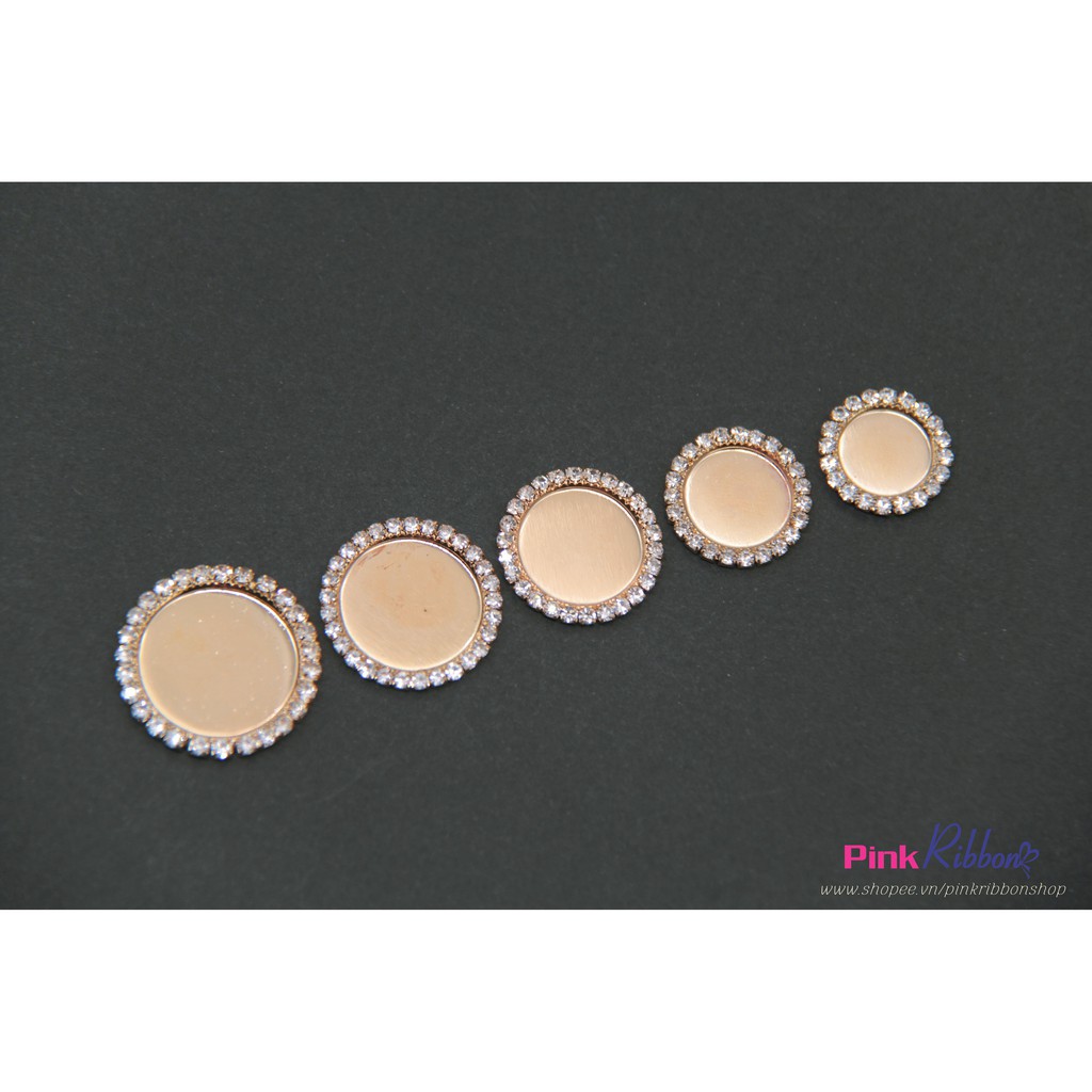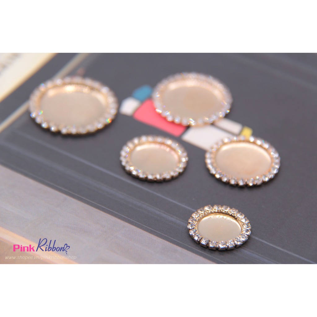 Chất liệu: Mạ kim, đính đáĐĩa mạ kim viền đá có 5 kích thước: