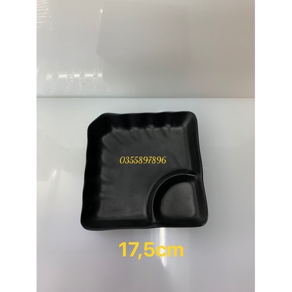 Đĩa phíp Melamine dùng từ chất liệu melamine đen mờ không trày xước , chống rơi vỡtoàn bộ từ trong ra ngoài chứ không phải sơn phủ đen bên ngoài nên bạn yên tâm không lo hao mòn bóng tróc. chịu nhiệt lên đến 200 độ. có kèm ngăn chấm tiện lợi khi sử dụng