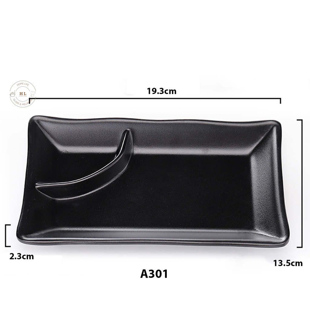 Nhà cửa & Đời sống > Bộ đồ bàn ăn > Dĩa || ĐĨA MELAMINE ĐEN A301 3111 CHỊU NHIỆT CÓ KHAY CHẤM CHO NHÀ HÀNG CAO CẤP | ĐĨA CHỮ NHẬT ĐEN NHÁM CHIA NGĂN MELAMINE A5Còn hàng