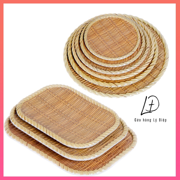 Nhà cửa & Đời sống > Bộ đồ bàn ăn > Dĩa || Đĩa mẹt nhựa tròn giả mây tre đan⚡️ LOẠI DÀY⚡️Dĩa phíp Melamine đựng bún đậu,đồ ăn vặt,trái cây -❖shoptanthoi❖Còn hàng