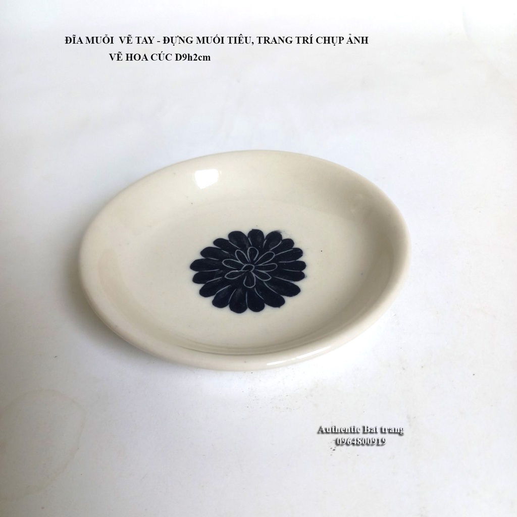 Đĩa muối, Đĩa gia Vị D9h2 vẽ tay- Đựng muối tiêu, gia vị , trang trí chụp ảnh rất tuyệt vời -gốm sứ authentic bat trang