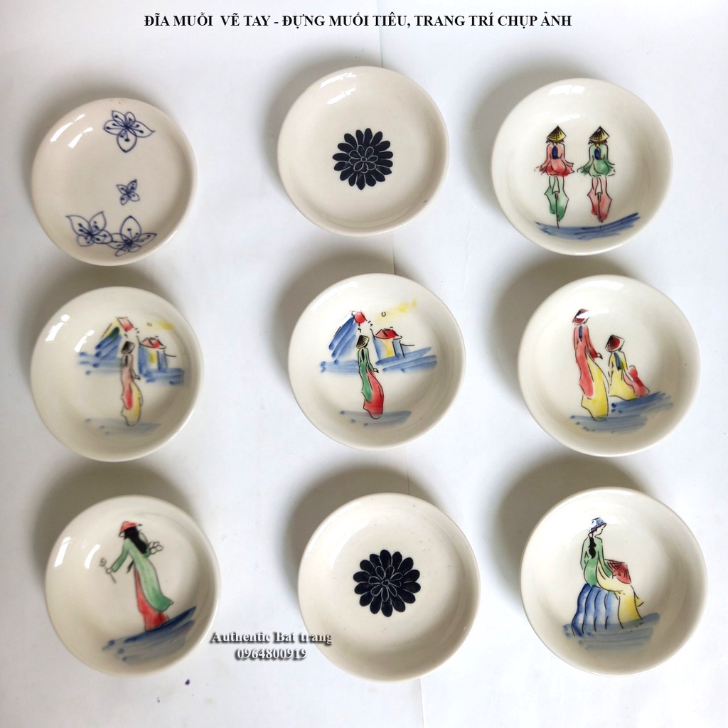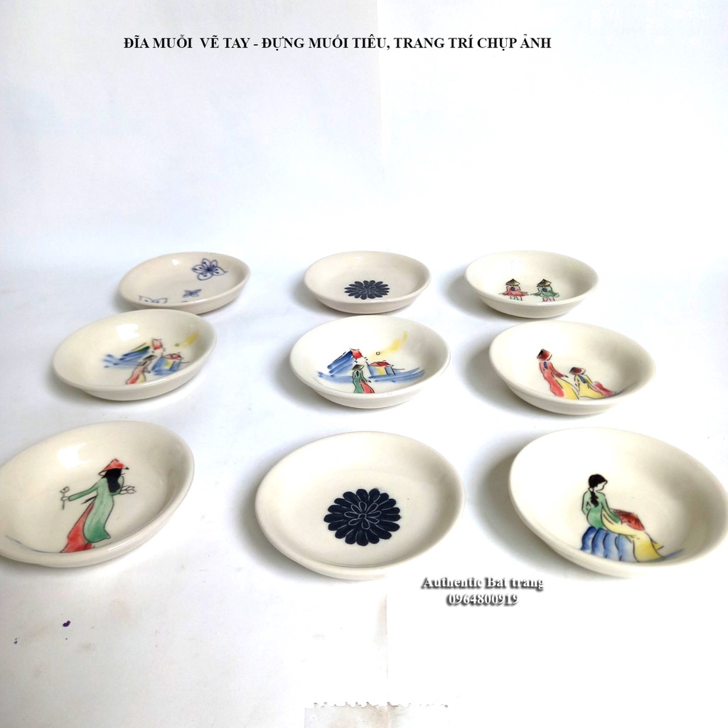 Nhà cửa & Đời sống > Bộ đồ bàn ăn > Dĩa || Đĩa muối, Đĩa gia Vị D9h2 vẽ tay- Đựng muối tiêu, gia vị , trang trí chụp ảnh rất tuyệt vời -gốm sứ authentic bat trangCòn hàng