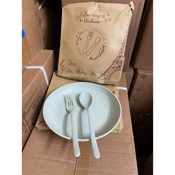 Bộ dĩa muỗng nĩa nhựa lúa mìQuà km Unilever