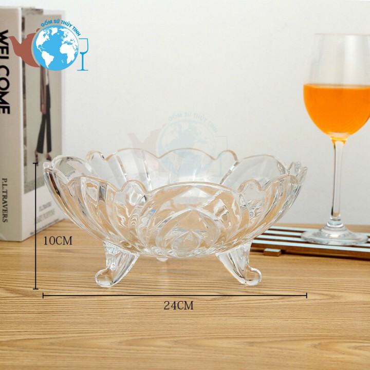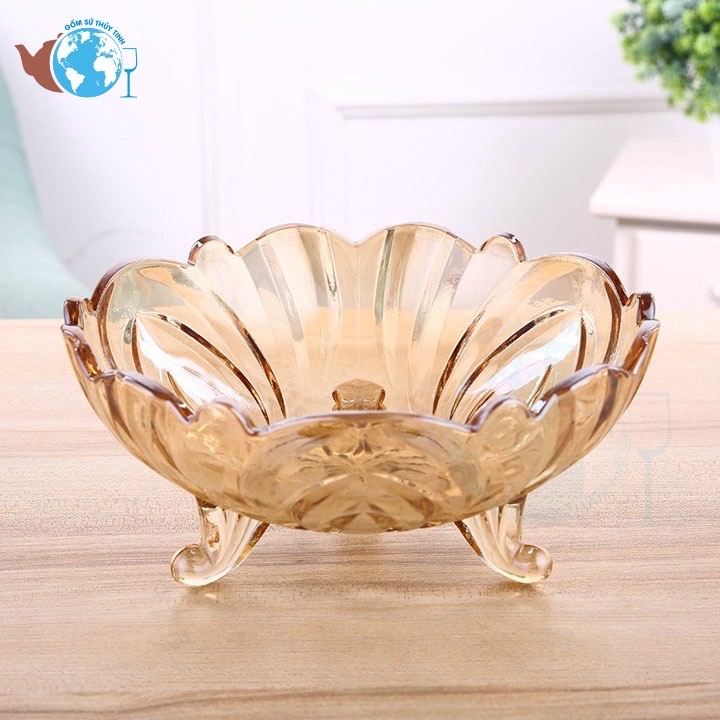 Đĩa mứt khay hoa quả 3 chân thủy tinh hàng chất lượng cao