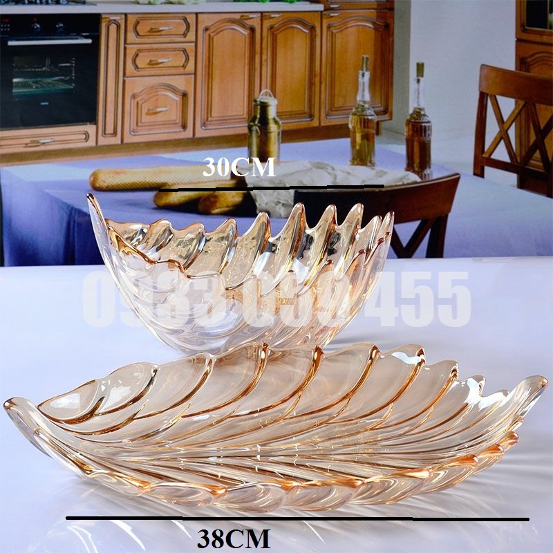 Giới thiệu Dĩa mứt thủy tinh pha lê cao cấp nhũ vàng chiếc lá, đĩa để trái cây hoa quả ngày tết đẹp