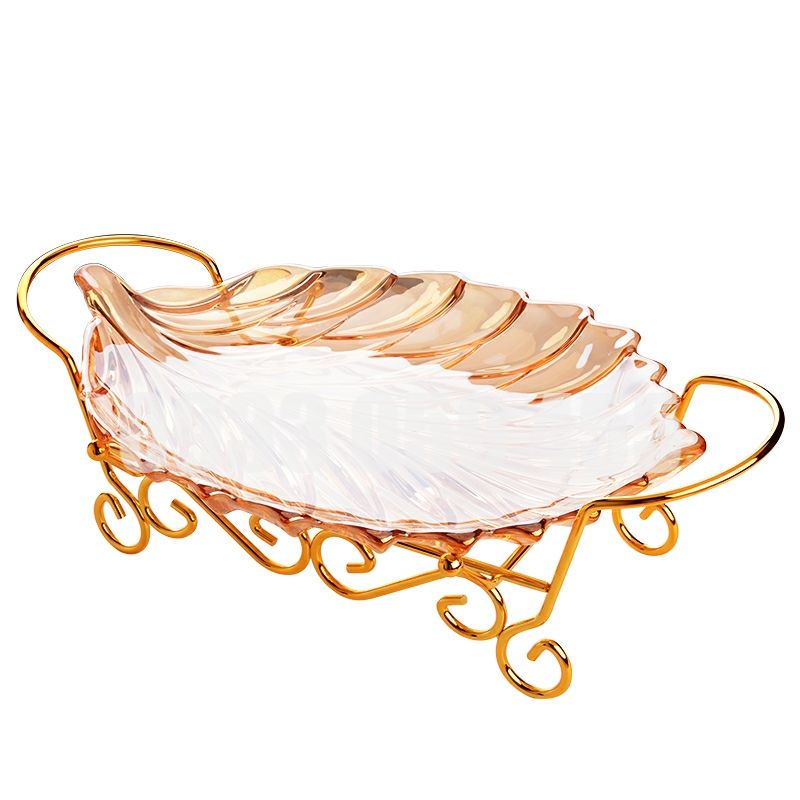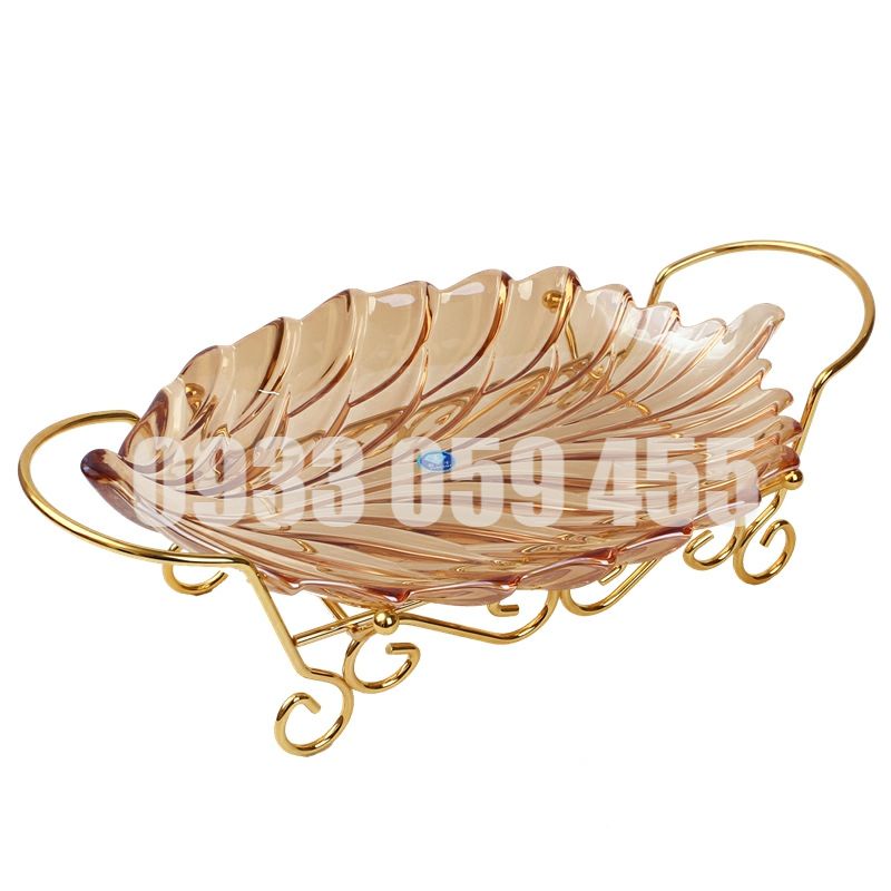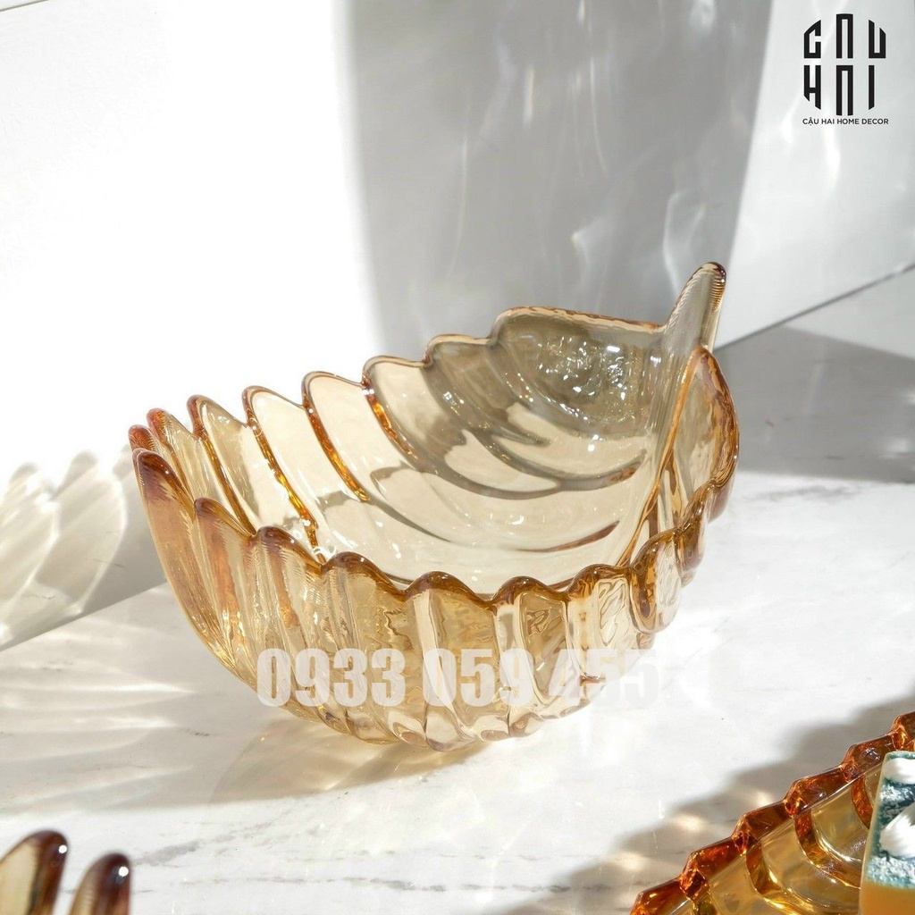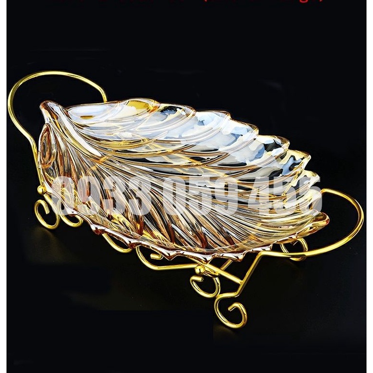 Dĩa mứt thủy tinh pha lê cao cấp nhũ vàng chiếc lá, đĩa để trái cây hoa quả ngày tết đẹp