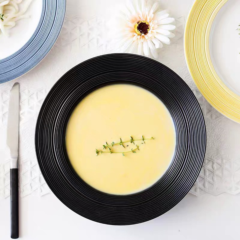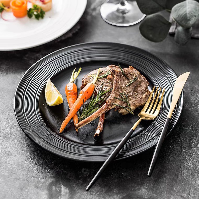 Giới thiệu Đĩa nhà hàng phong cách Bắc Âu sang trọng, đĩa phẳng và đĩa sâu lòng màu đen đơn giản, nhẹ nhàng tinh tế, sang trọng