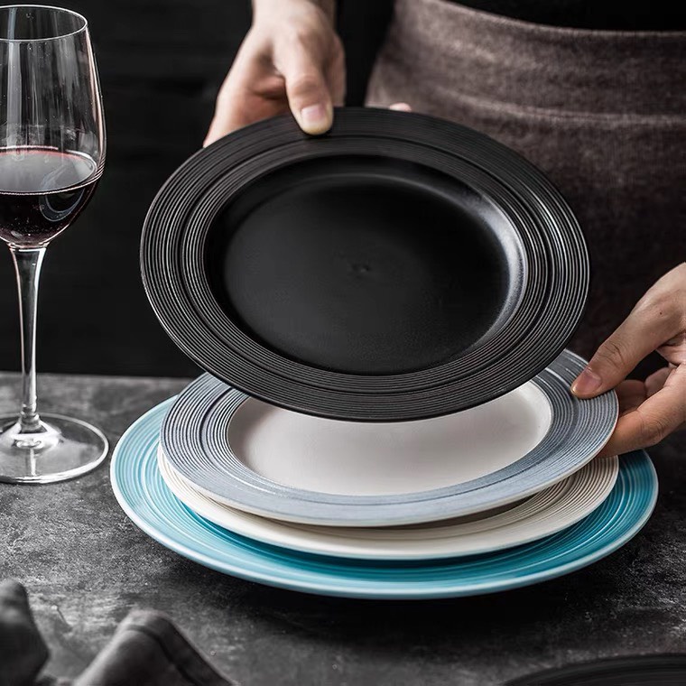 Nhà cửa & Đời sống > Bộ đồ bàn ăn > Dĩa || Đĩa nhà hàng phong cách Bắc Âu sang trọng, đĩa phẳng và đĩa sâu lòng màu đen đơn giản, nhẹ nhàng tinh tế, sang trọngCòn hàng