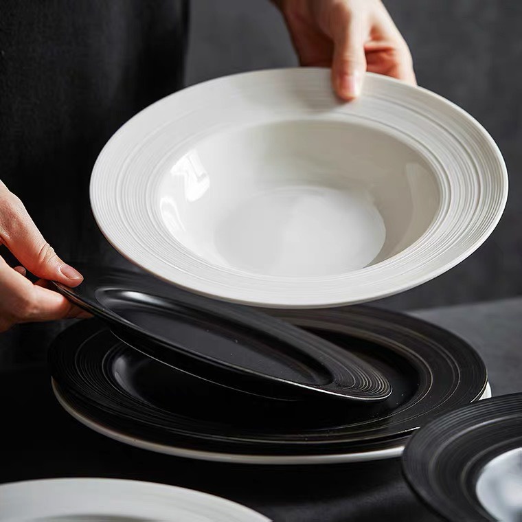 Nhà cửa & Đời sống > Bộ đồ bàn ăn > Dĩa || Đĩa nhà hàng phong cách Bắc Âu sang trọng, kiểu dáng phẳng và sâu lòng,trắng đơn giản, nhẹ nhàng tinh tếCòn hàng