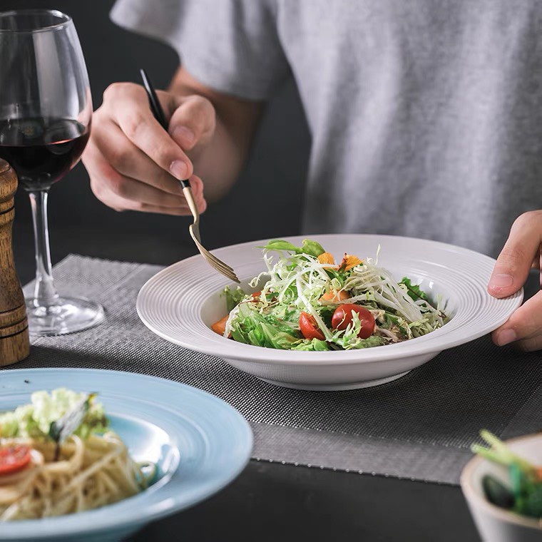 Giới thiệu Đĩa nhà hàng phong cách Bắc Âu sang trọng, kiểu dáng phẳng và sâu lòng,trắng đơn giản, nhẹ nhàng tinh tế