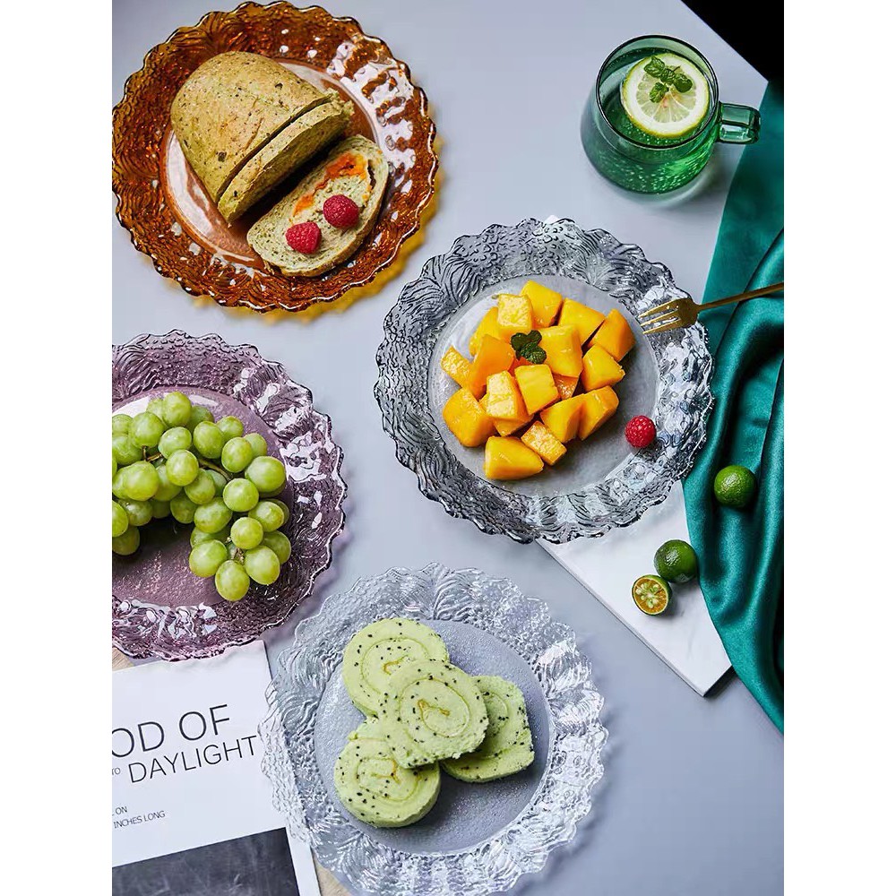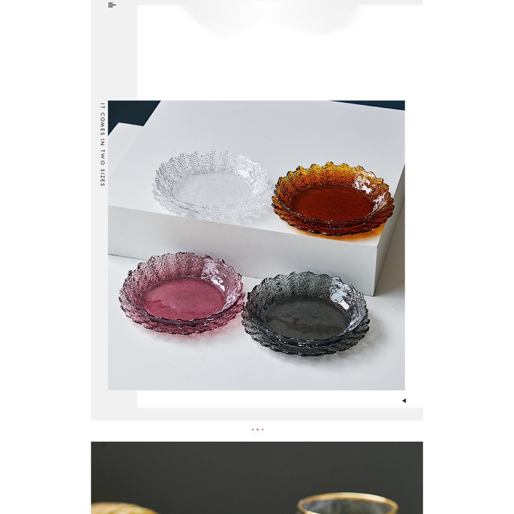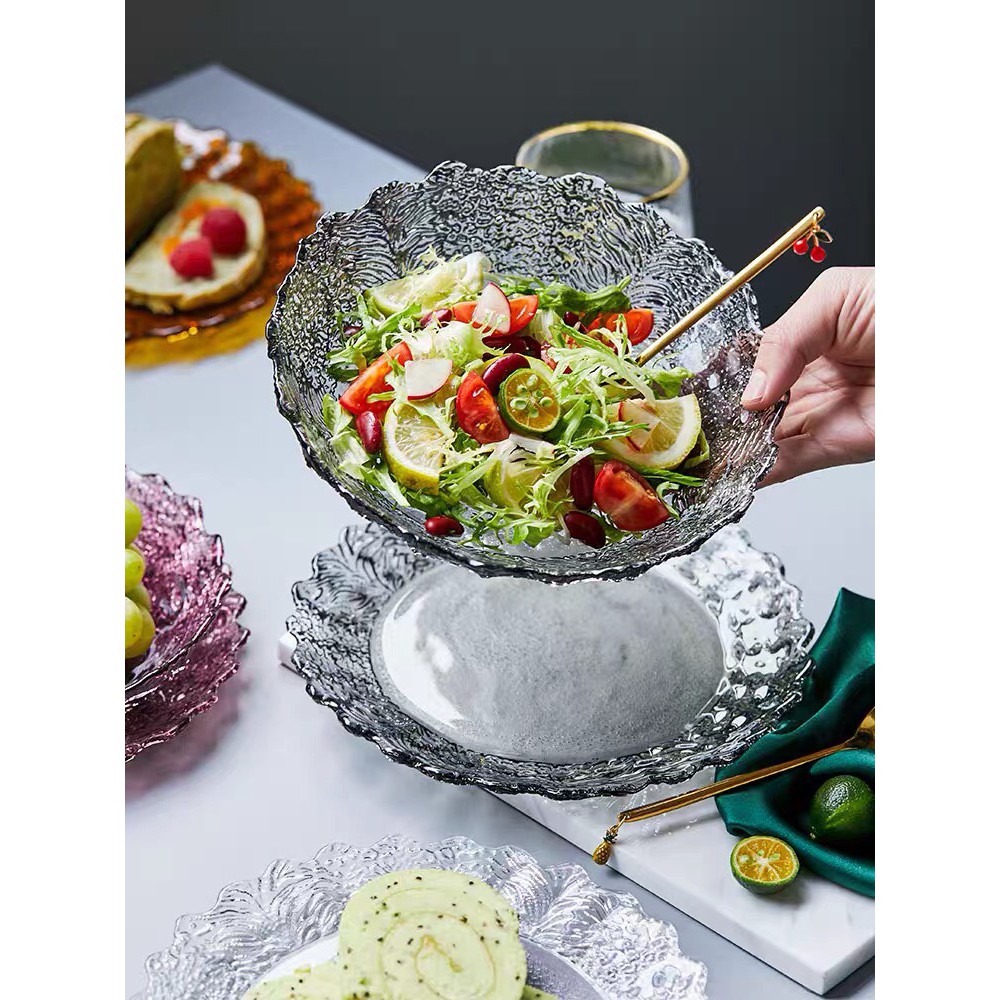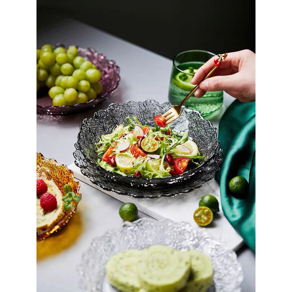 Nhà cửa & Đời sống > Bộ đồ bàn ăn > Dĩa || Đĩa nhiều màu sắc tạo dáng thành hoa, chất liệu thủy tinh nhẹ nhàng tinh tế, để salad, hoa quả, bánh kẹoCòn hàng