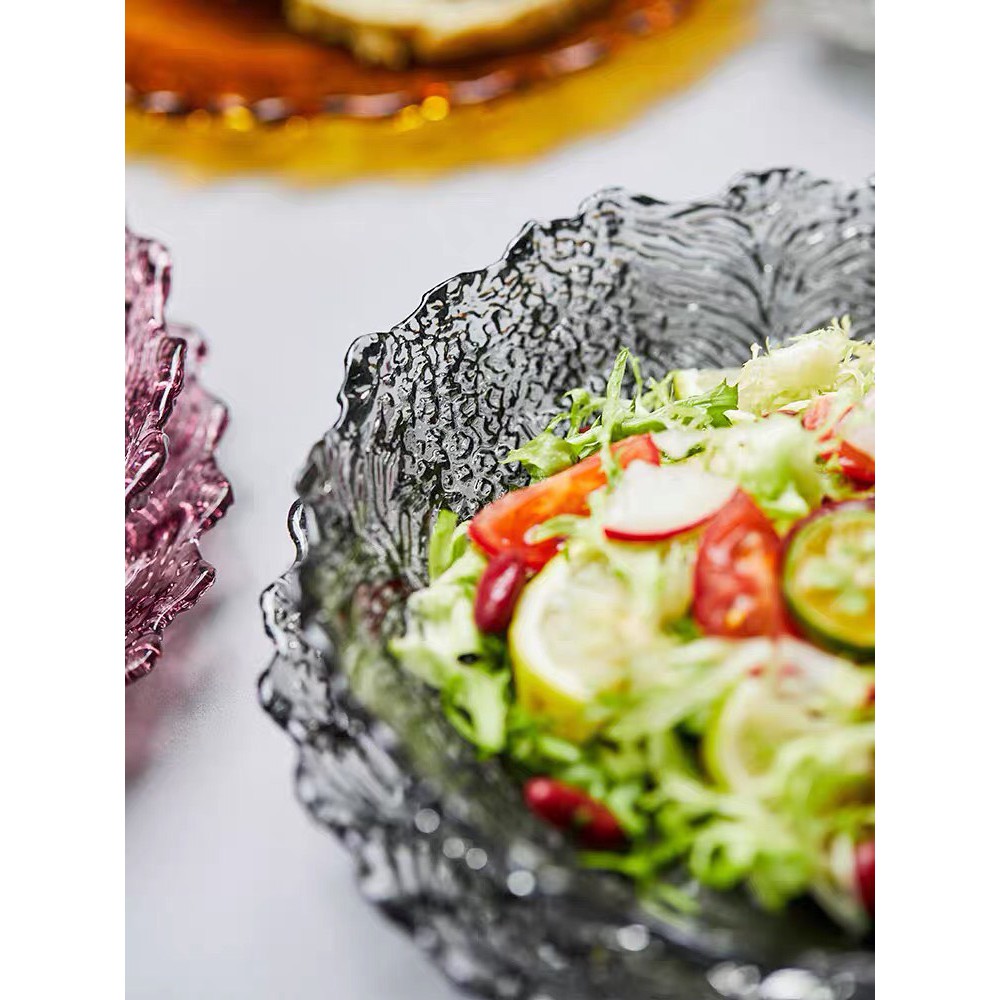 Đĩa nhiều màu sắc tạo dáng thành hoa, chất liệu thủy tinh nhẹ nhàng tinh tế, để salad, hoa quả, bánh kẹo