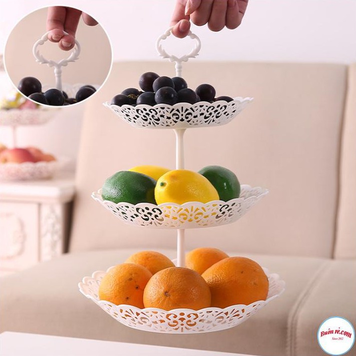 - Đĩa 3 Tầng Nhựa Đựng Bánh Kẹo là món đồ trang trí nội thất đa năng có thể tháo lắp dễ dàng cho việc cất giữ bảo quản hay vận chuyển.