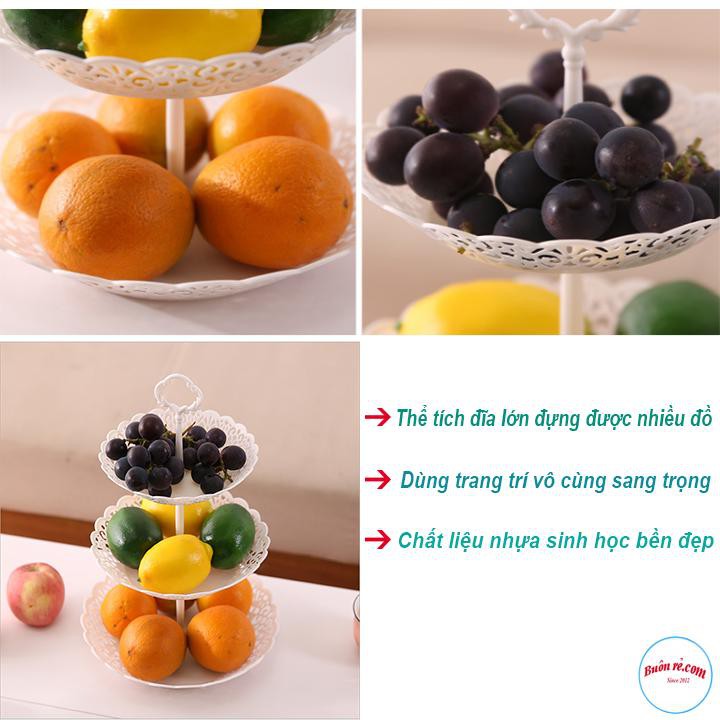 Đĩa Nhựa 3 tầng đựng Bánh Kẹo, hoa quả,... phong cách Châu Âu 00716