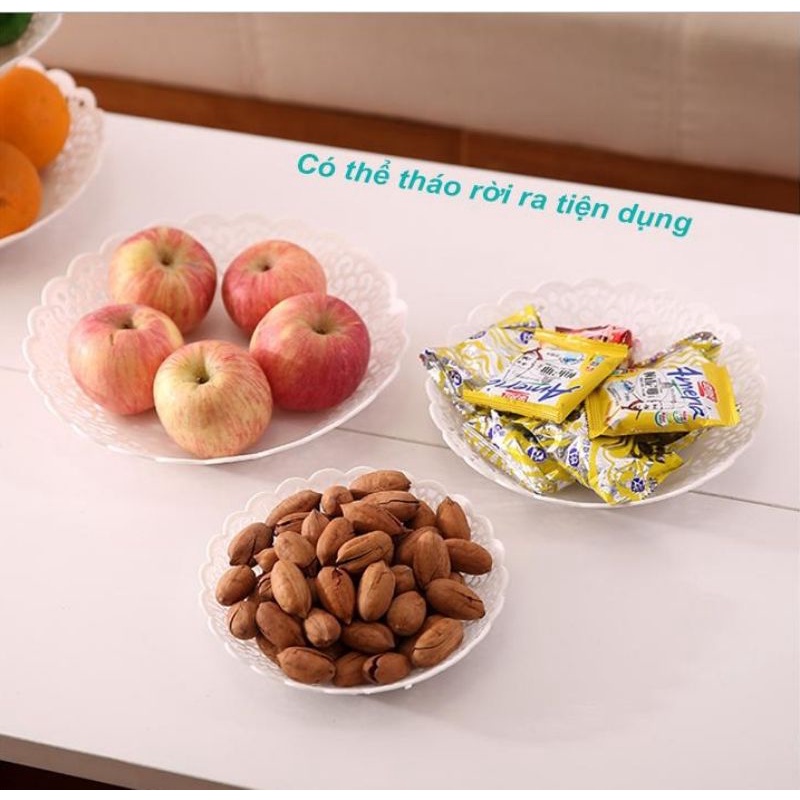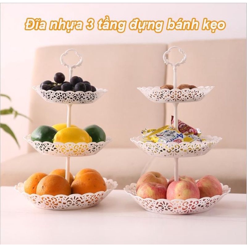 Đĩa nhựa 3 tầng đựng bánh kẹo, hoa quả