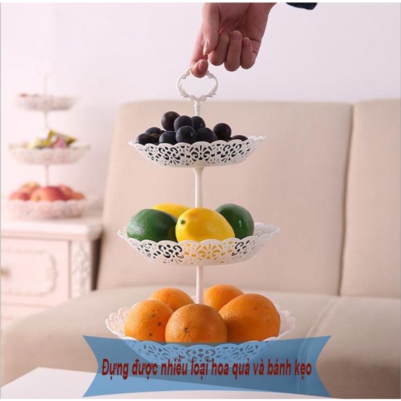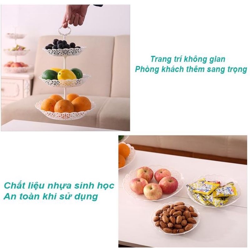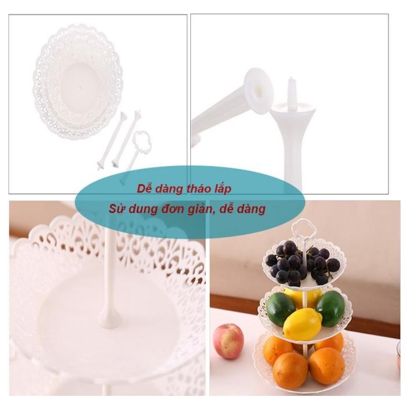 - Đĩa 3 Tầng Nhựa Đựng Bánh Kẹo là món đồ trang trí nội thất đa năng có thể tháo lắp dễ dàng cho việc cất giữ bảo quản hay vận chuyển.