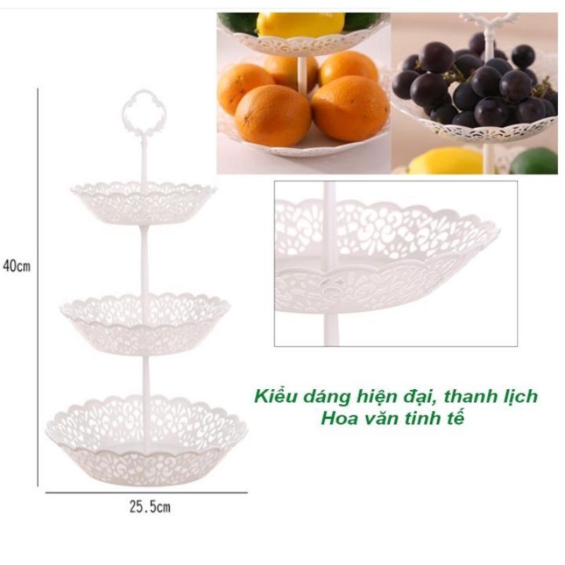 Đĩa nhựa 3 Tầng Đựng Bánh Kẹo, hoa quả- Bạn có thể đựng các loại bánh cupcake hay hoa quả cho các bữa tiệc đặc biệt của gia đình.