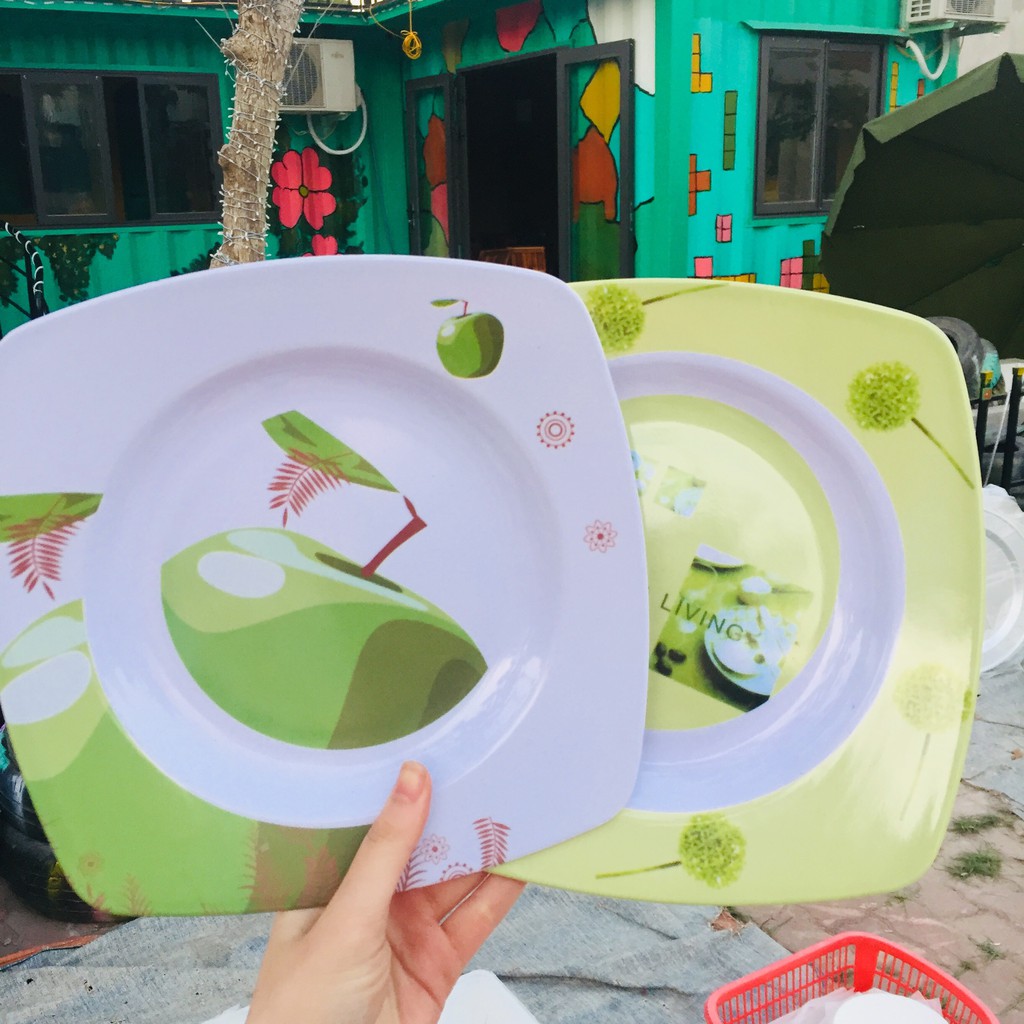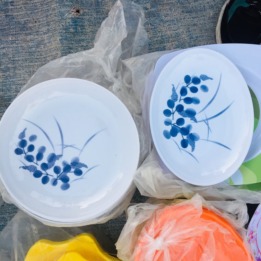 Đĩa nhựa có hoa văn đẹp, đa dạng kích thước kiểu dáng tròn, bầu dục, an toàn, ko vỡ, đồ dùng cho nhà bếp, đồng giá 10K