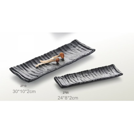 Dĩa nhựa đen 2713 cao cấp hình chữ nhật dài 32.9*10.5*2.5 có vân sọc ngang để bày set thịt rất đẹp