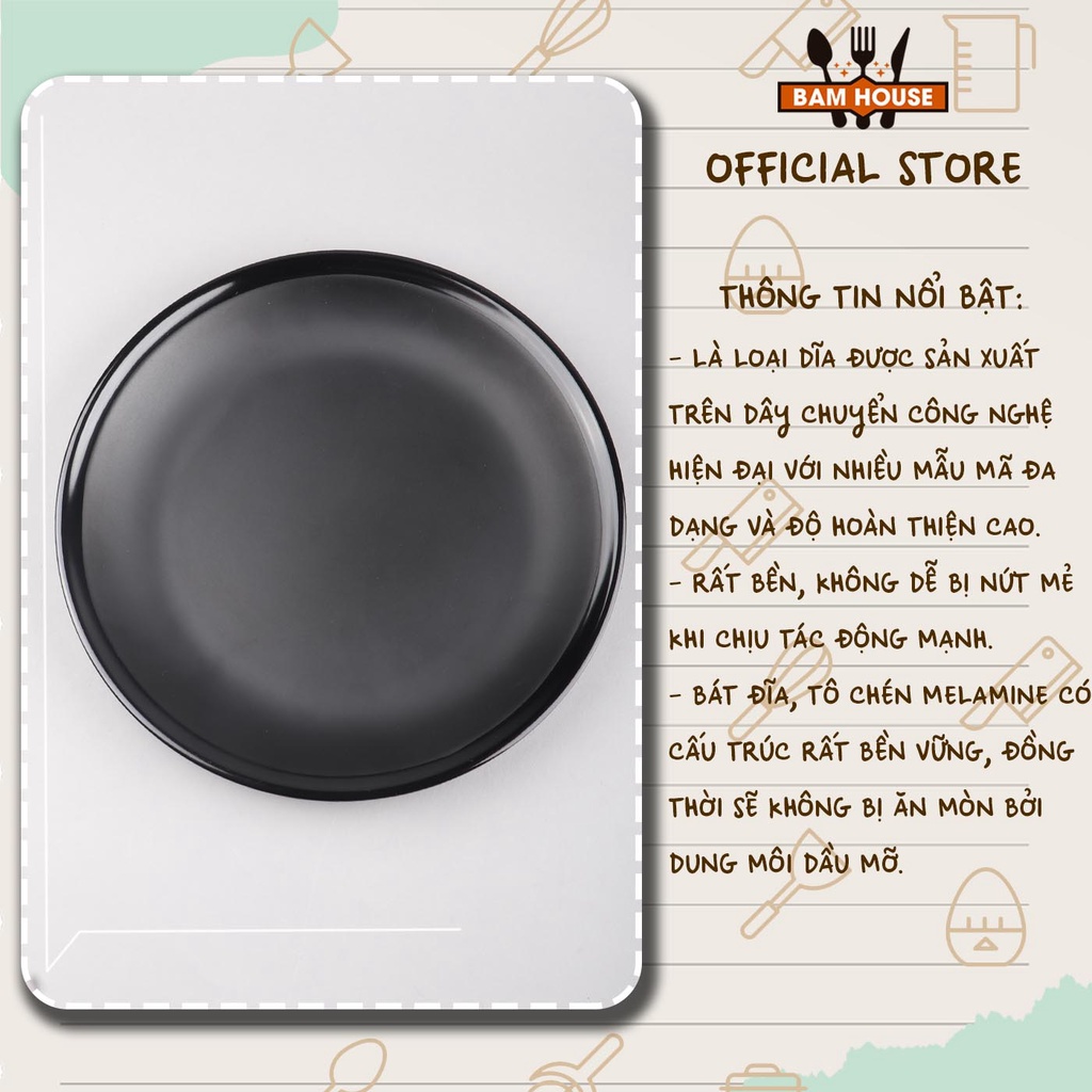 Dĩa nhựa đen nhám Bam House hình tròn chất liệu Melamine cao cấp DCN03 - Dĩa hình tròn nhựa Melamine