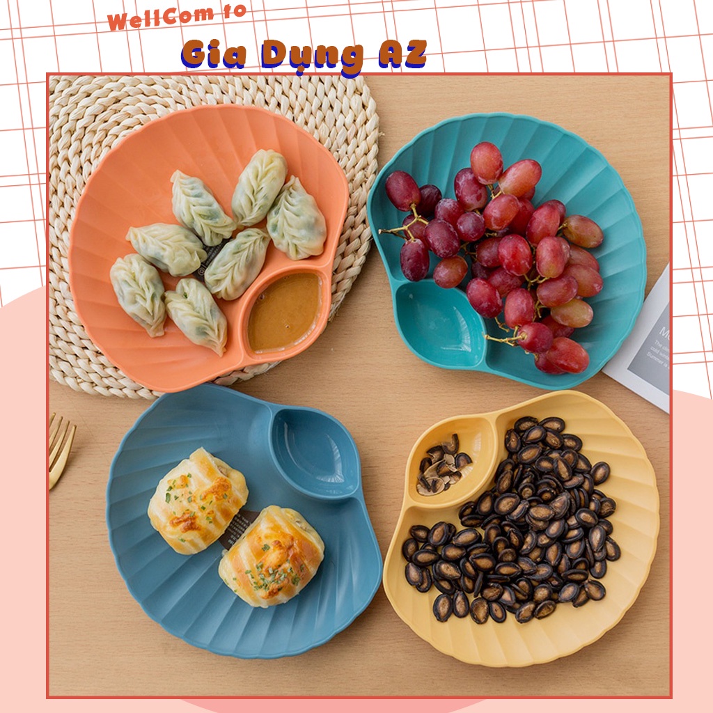 Đĩa nhựa đẹp decor set 4 đĩa đựng thức ăn hình vỏ sò có ngăn để gia vị chấm nhiều màu sắc đẹp mắt AZtb555266