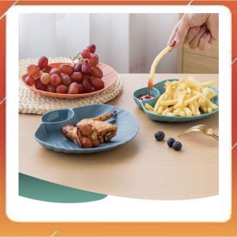 Giới thiệu Đĩa nhựa đựng đồ ăn, hoa quả hình con sò có ngăn để gia vị 2 in 1 tiện lợi màu ngẫu nhiên