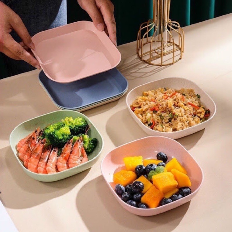 Nhà cửa & Đời sống > Bộ đồ bàn ăn > Dĩa || Dĩa nhựa đựng thức ăn, đựng trái cây hình vuông chất liệu lúa mạch tiện dụng - Dĩa nhựa lúa mạch siêu xinhCòn hàng