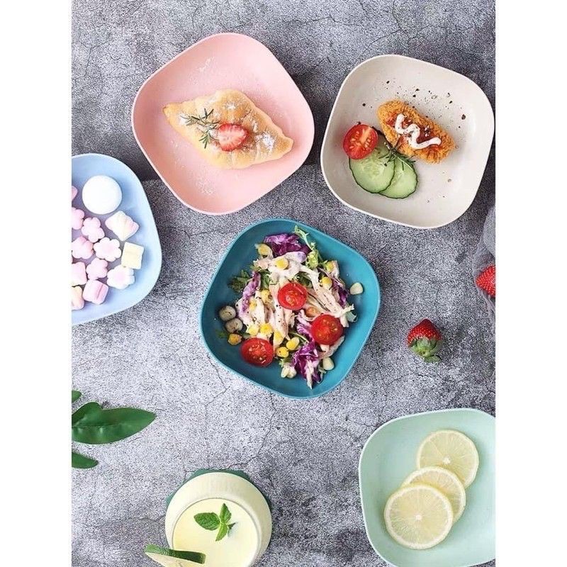 ☘màu pastal siêu xinh, đĩa lúa mạch hình vuông đựng thức ăn, hoa quả, bánh kẹo
