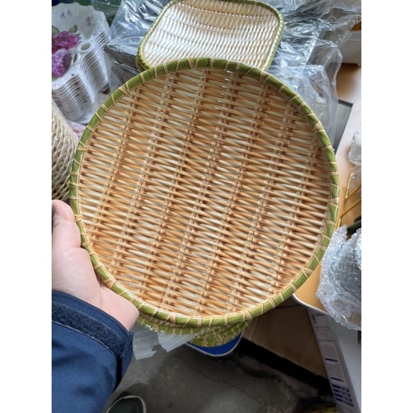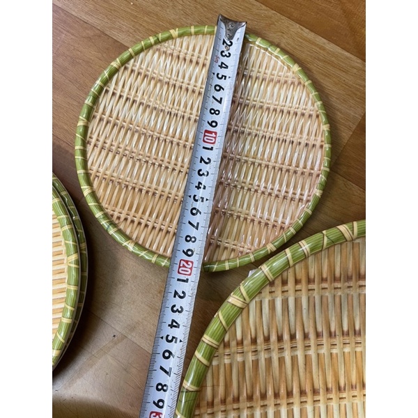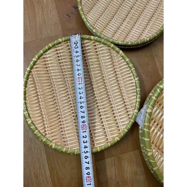 đĩa nhựa giả mẹt tre bày đồ ăn, rất bắt mắt, trông như xếp trên mẹt thật. tạo hiệu ứng cho món ăn thêm ngon mắt.hàng sẵn tại mỹ đình