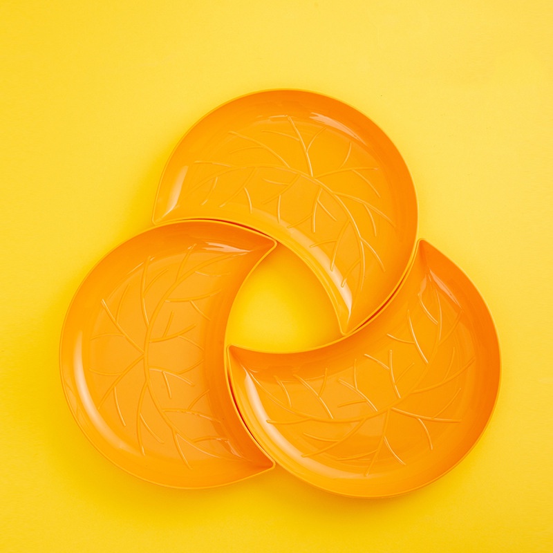 Đĩa nhựa in vân lá, hình chiếc lá, đĩa phíp lá đựng đồ ăn, hoa quả, bánh kẹo