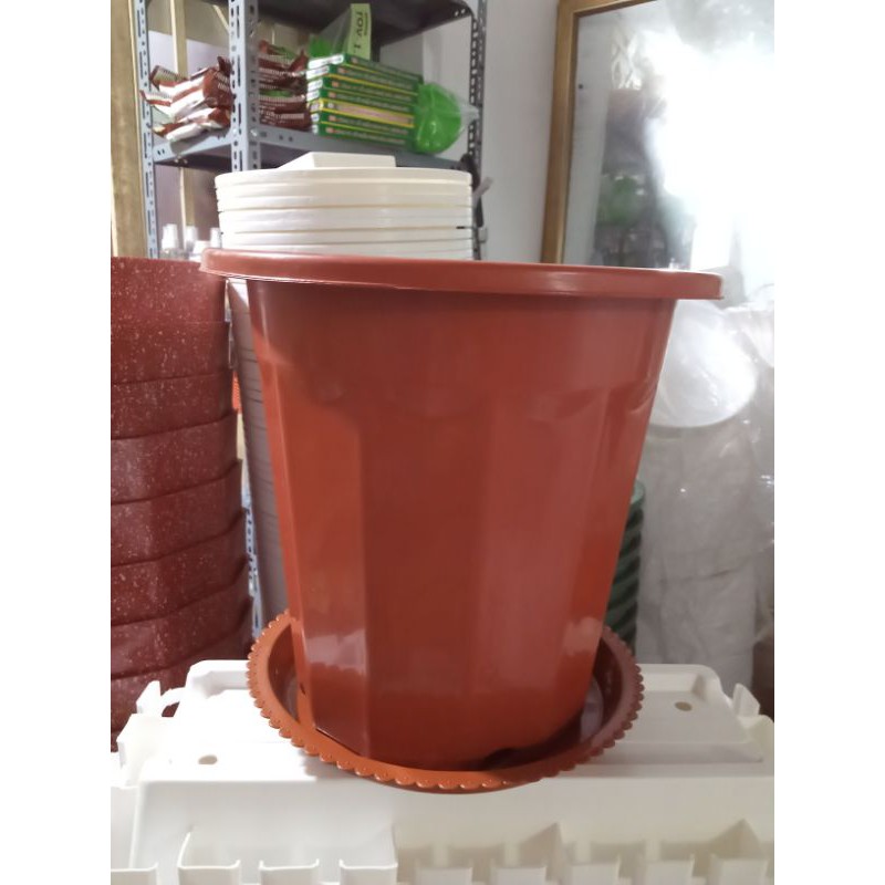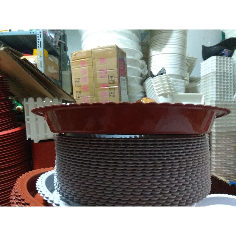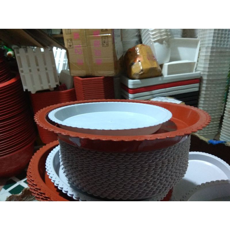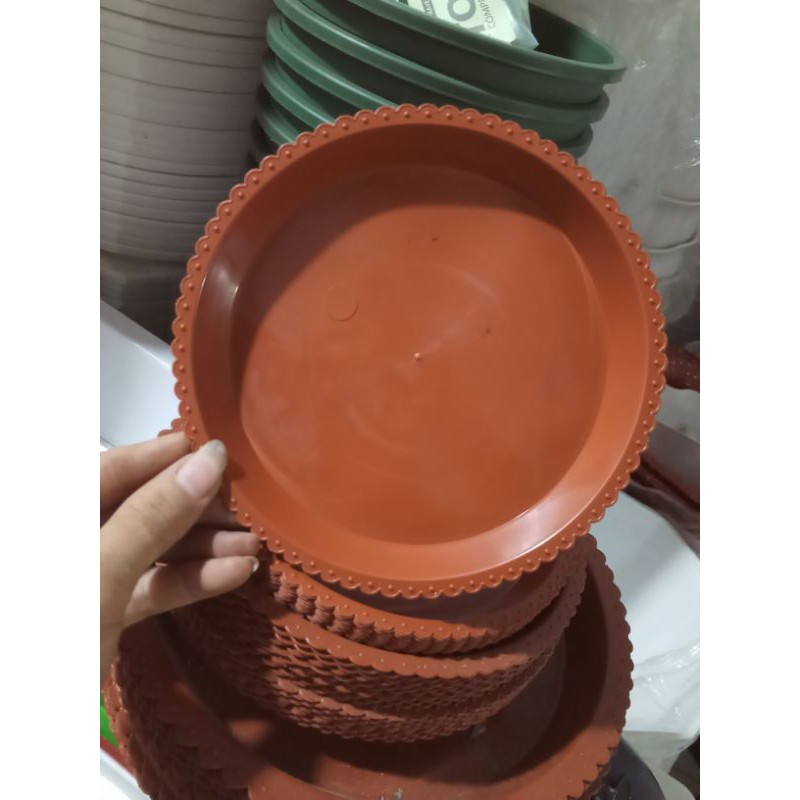Đĩa nhựa lót chậu viền hoa nhiều kích thước_ Đĩa nhựa lót chậu E đỏ gạch_đĩa hứng nước chậu cây trồng