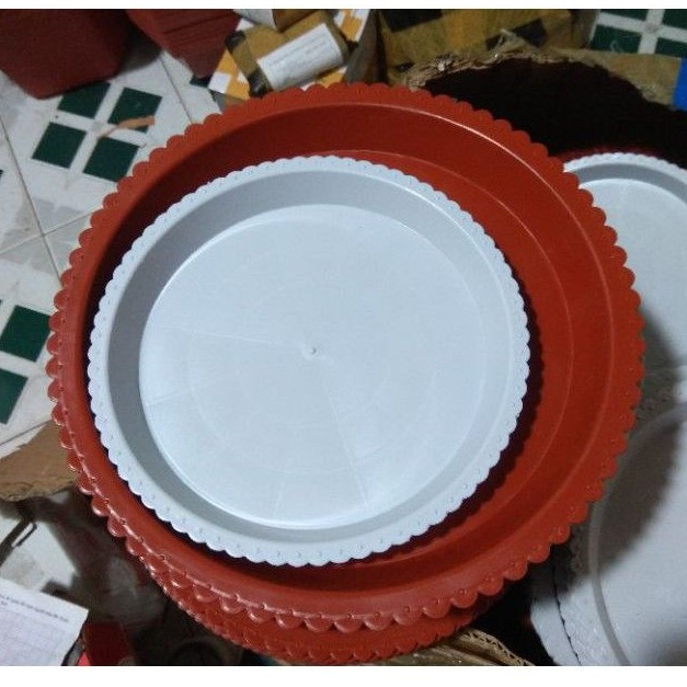 Đĩa nhựa lót chậu viền hoa nhiều size phù hợp cho nhiều kích thước chậu khác nhau, đặc biệt là đĩa chuyện dụng dùng cho chậu E đỏ gạch- 2 màu : Đỏ gạch _ Trắng