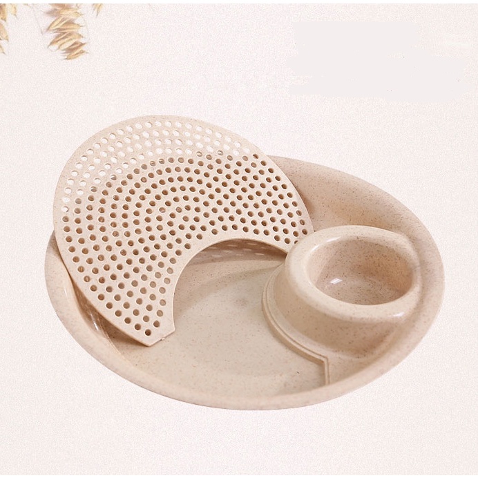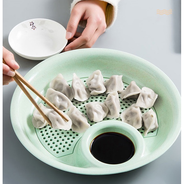 Giới thiệu Đĩa nhựa lúa mạch chia 2 ngăn đựng hoa quả đồ ăn bánh bao và gia vị nước chấm - Đồ gia dụng, dụng cụ nhà bếp thông minh