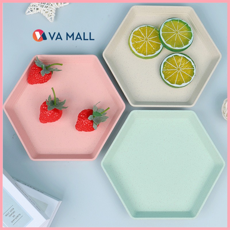 Đĩa nhựa lúa mạch hình lục giác 4 màu siêu xinh đựng thức ăn, trái cây, bánh kẹo, decor gian bếp