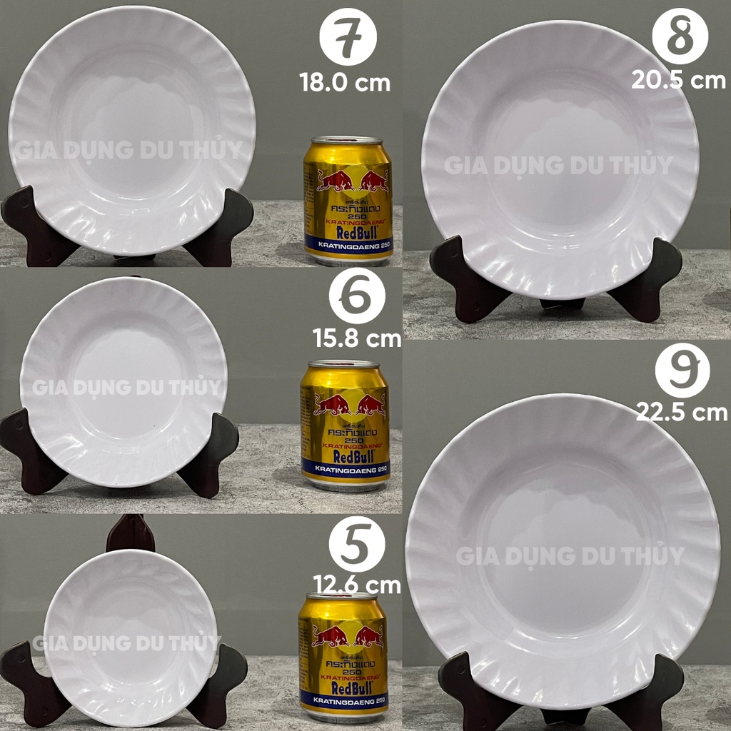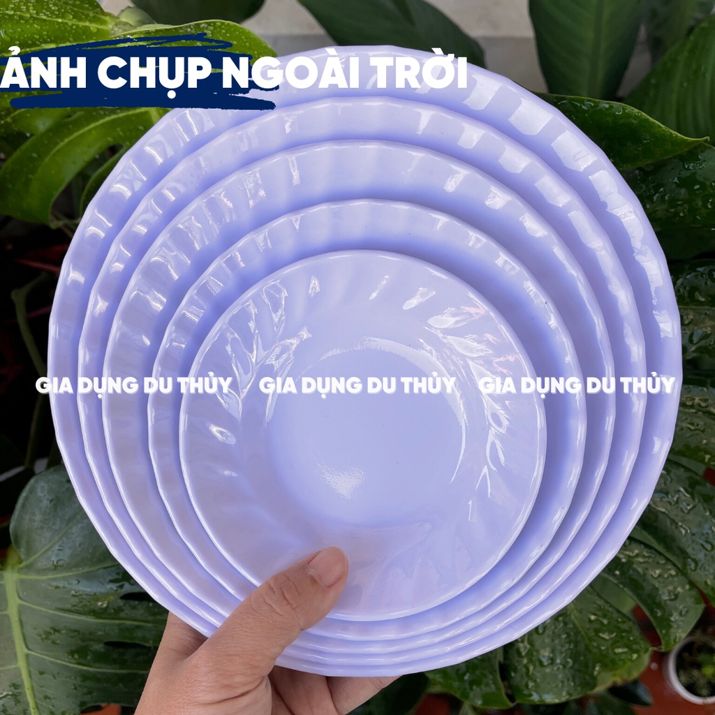 Dĩa Nhựa Melamine Đáy Sâu Màu Trắng, Vàng, Xanh, Bông Xanh, Bông Đỏ Chất Liệu Nhựa Phíp Mica Cứng Của Gia Dụng Du Thủy