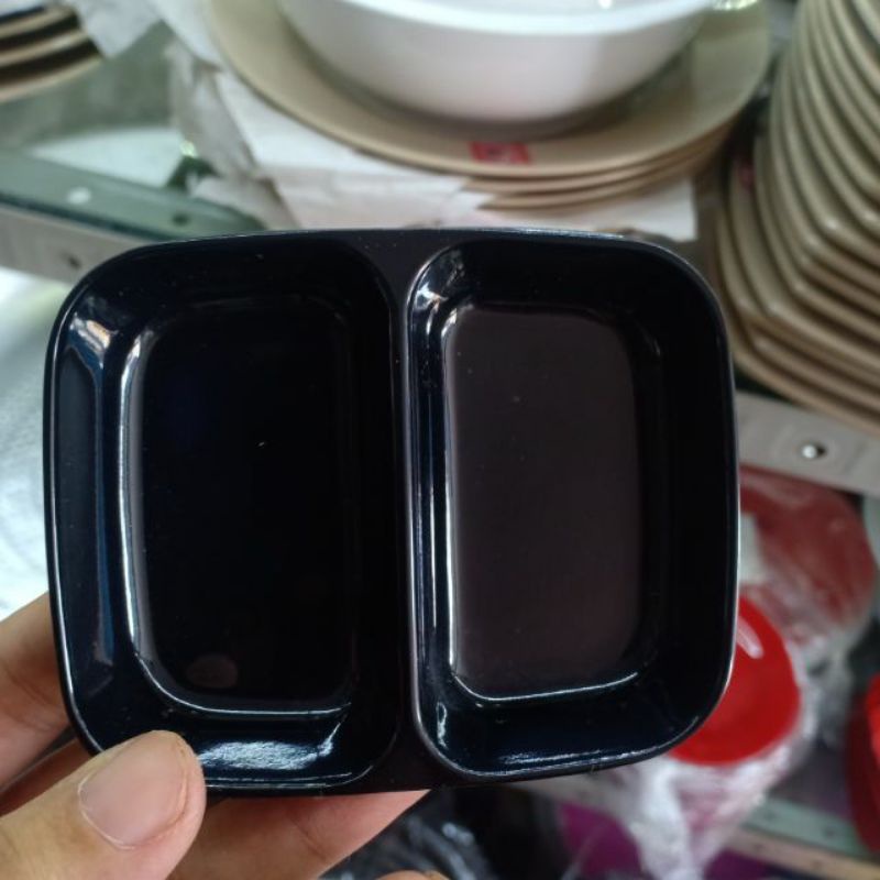 Đĩa nhựa phíp đựng nước chấm, gia vị 2 ngăn 2 màu đen, trắng Việt Nhật