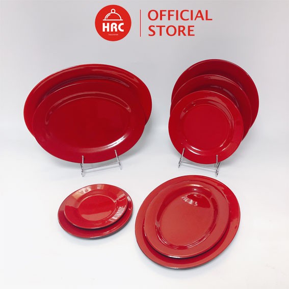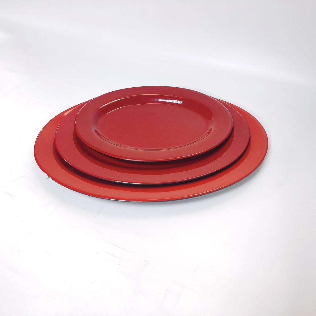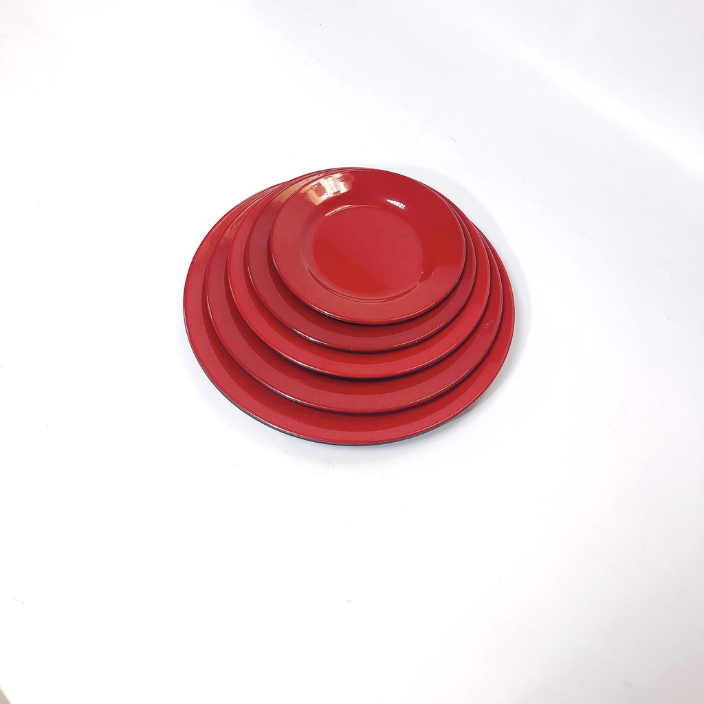 Đĩa Nhựa Phíp MELAMINE Cao Cấp Màu Đỏ Đen [AN TOÀN] [BỀN ĐẸP]- Đĩa Cạn Tròn :